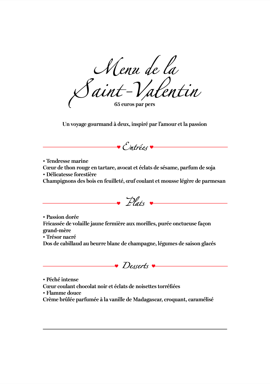 La Saint-Valentin arrive à grands pas ❤️ Pensez à réserver votre table pour une soirée pleine de saveurs.